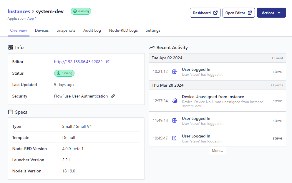 We have added the ability to manage the Node-RED version running on application-assigned Devices within FlowFuse.
